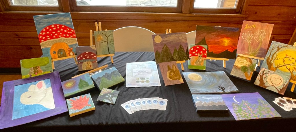 This was our first ArtWalk and I hope it will not be our last. I enjoyed meeting so many neighbors and people from Facebook that I knew, but had not met – it is a weird day and age we live in. Anyway – it was really exciting seeing the interest in doing workshops – I will be posting some offerings for personal mindful art workshops for you, your family, or friends.